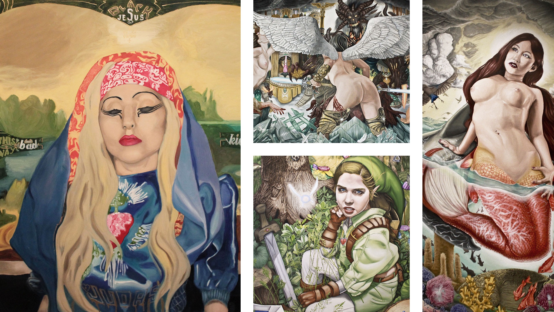 Quincy St. Kitts is an emerging figurative artist from Canada whose art tells the story of strong, heroic people – both real and imagined. He uses oil paint on large canvases to convey depth and detail with rich and vibrant colours. He is strongly influenced by characters in comics, movies, music and fantasy.