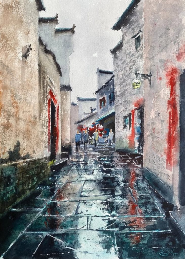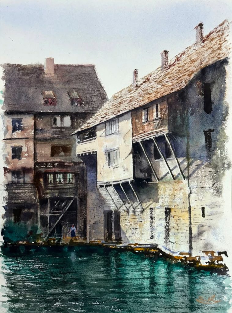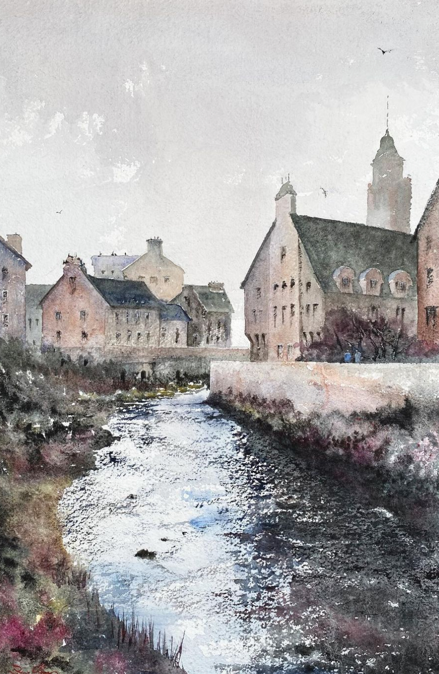 Rodrigo Aros Llanos, renowned for his watercolor artistry, showcases a refined technique that invites viewers on a captivating journey. Born in Chile in 1975, his work transcends borders, as he has participated in significant artistic events across Europe, America, and Asia. In addition to his expertise in urban landscapes, the artist demonstrates a profound mastery over marine and rural themes. Through his art, one can discern the presence of anonymous figures amidst the bustling landscapes of major cities. These figures, delicately illuminated, emerge from obscurity to engage in a captivating interplay of colors.